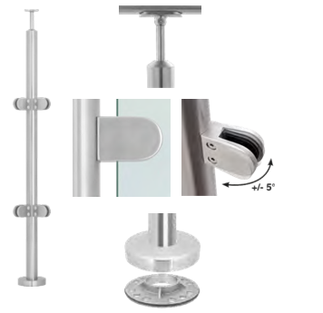 Complete Stainless Steel Corner post with Saddle for Top Rail, Grade 316 Stainless Steel, ∅42.4mm.