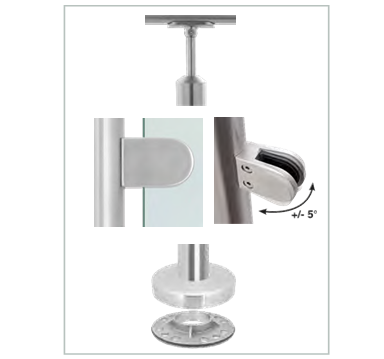 Complete Stainless Steel End post with Saddle for Top Rail, Grade 316 Stainless Steel, ∅42.4mm.