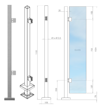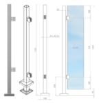 Complete Stainless Steel Corner post with Flat for Top cap, Grade 316 Stainless Steel, 40mm * 40mm.