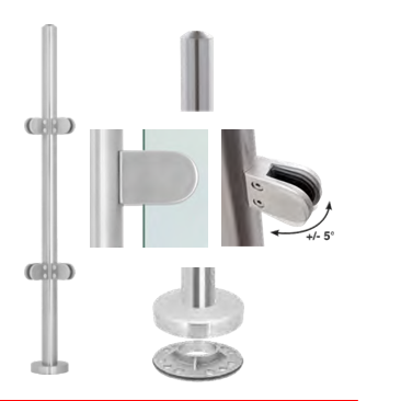 Complete Stainless Steel Corner post with Saddle for Top Rail, Grade 316 Stainless Steel, ∅ 42.4mm.