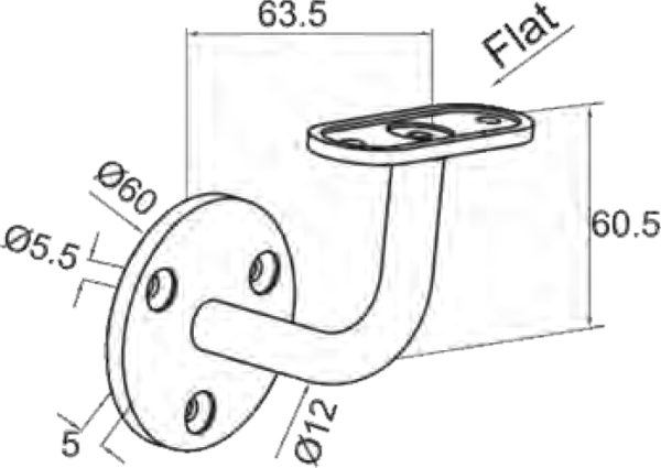 Wall fix 90° cranked Handrail Bracket – (For Round Tubes)